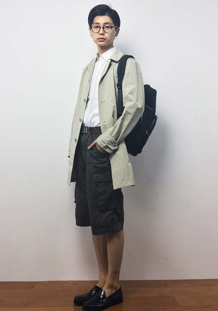 オン・オフ兼用できる汎用性の高さが魅力の一つであるステンカラーコート。ブランドを代表する「ダンケルド」は、その永久定番ともいえる名作。なかでも写真の膝上丈「ダンケルド ショート」は、日本人でもバランスよく着こなせる。