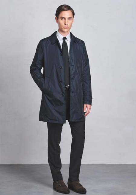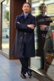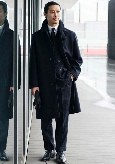 トレンチのようにウェストベルトがなく、ダッフルのようにトグルやフードもないシンプルな構造ゆえに、スーツの上に着るコートとしても着こなしやすいのです。