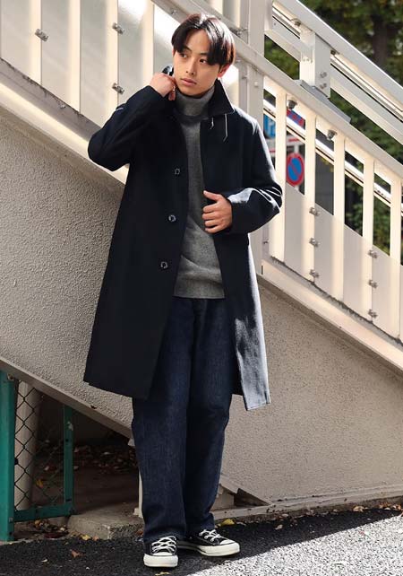 そもそも、ステンカラーとは日本独自の言い方で、英語ではバルマカーンコートと呼ばれています。第一ボタンをはずしても留めても着られる襟型のタイプのコートを指すものとされ、コートの中での着やすさはまさに筆頭株。