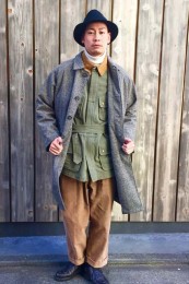 同ブランドの代名詞「オイルドコットン(雨が多い気候から英国人が生み出した撥水機能に優れた生地)」を採用したステンカラーコート。武骨な顔立ちで、男らしさ薫るコートの存在感は唯一無二。