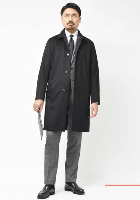 上質なカシミアとシルクを混紡した秋・冬向けステンカラーコート。英国トラッドから忠実に再現した紳士的な1着。