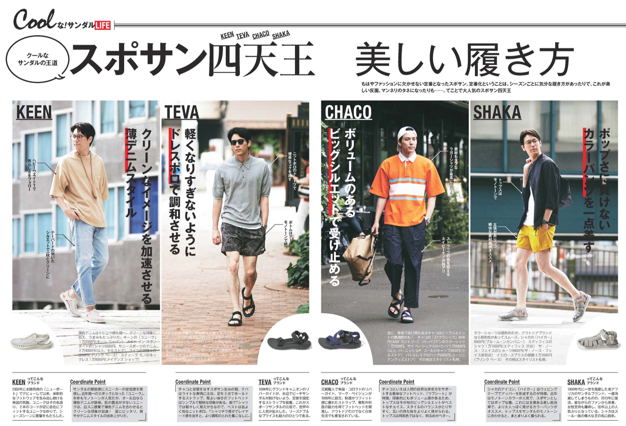 そんなスポサンで今、買うべきブランド、人気のブランドはどこ? そんな疑問を解決する『スポーツサンダルの人気ブランドランキング』をはじめ、定番モデル、着こなしのコツ、種類&特徴など、スポサンの必須情報を一挙にご紹介!