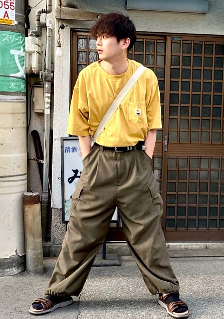 旬のオリーブカラーで男らしさをアピール