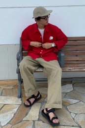 【差し色】コーデのスパイスとして使うなら差し色。発色の良い赤・青・黄色などが使えます。