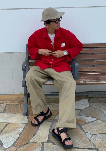 テバのスポーツサンダル×おしゃれな着こなし