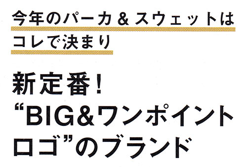 昨年末からストリートでも人気爆発の兆しを見せているブランドロゴを配置したパーカ&スウェットは、今季の流行トップス最前線!
