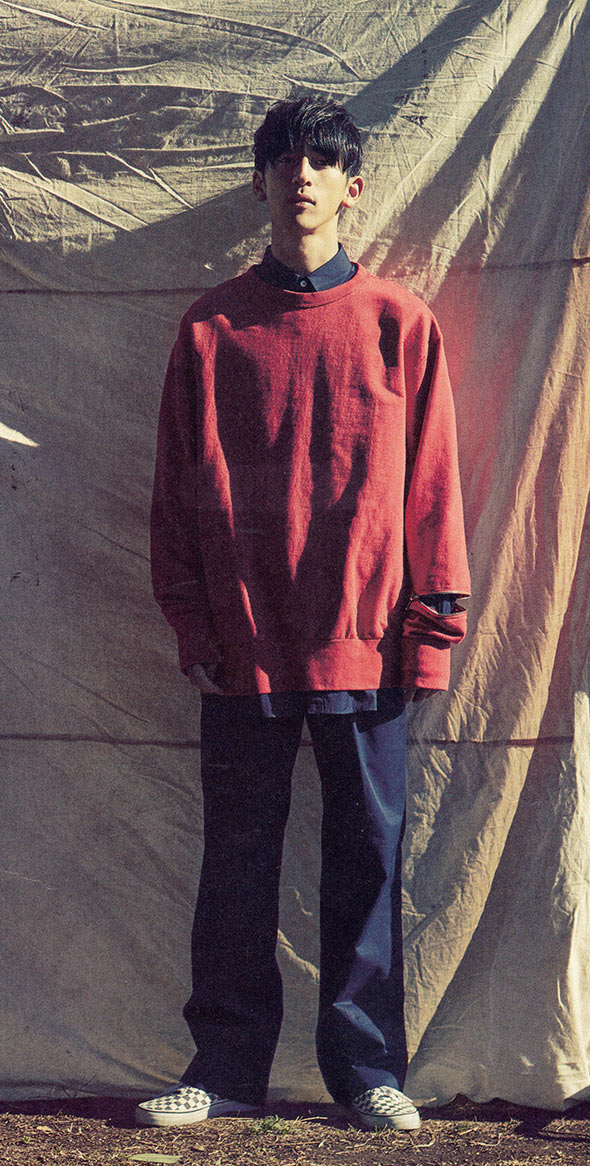 ブランドを象徴する、定番の持つある種の「物足りなさ」をカバーするようなアイテムとして、このスウェットは袖部のジッパーでさりげなく主張。落ち着きがありつつ一味違う雰囲気に。