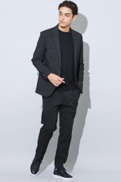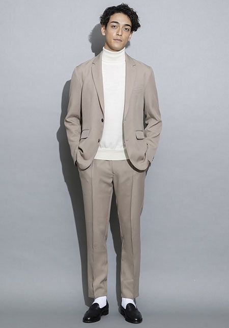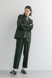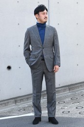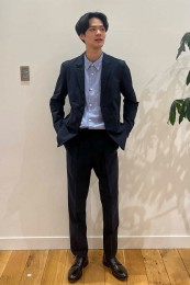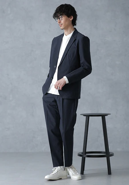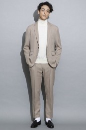 イタリアの高級服地メーカー「カノニコ」社の生地を使用したスーツ。そこにスリムなシルエットとモードテイストを持たせ、ナノユニバースらしい一着に仕上げています。