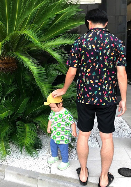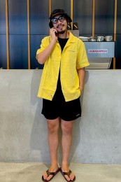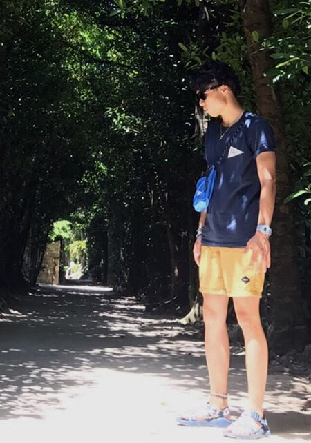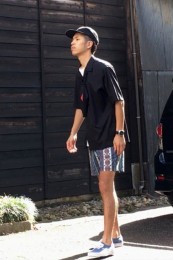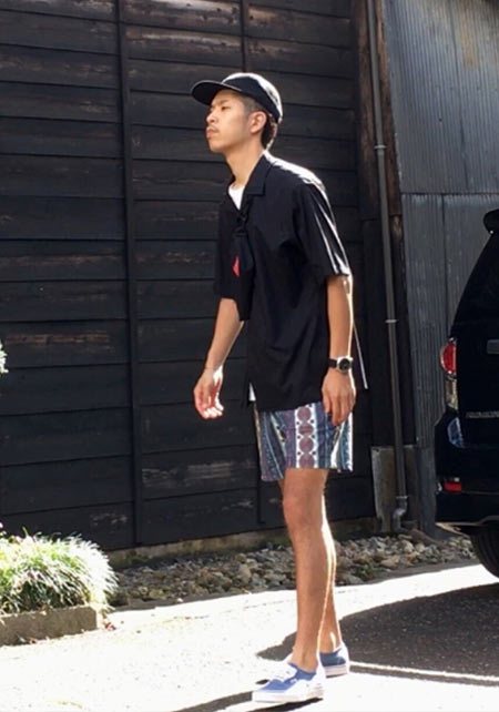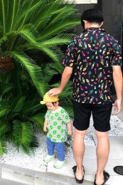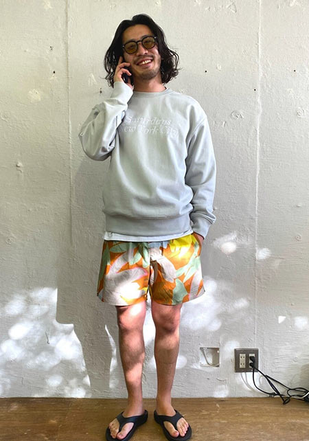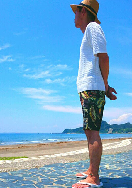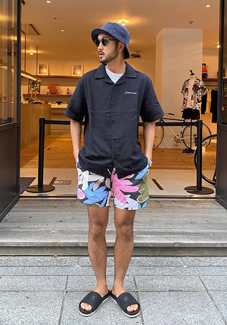 夏を象徴する「ヤシの葉柄」をダスティカラーで男らしくブラッシュアップ。子供っぽさが全くない、センスの効いた仕上がり。