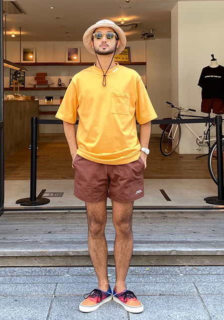 プールやビーチはもちろん、タウンユースにも使用できるスイムショーツ。シャリとハリ感のあるナイロン素材は、夏らしい清涼感を加速させます。