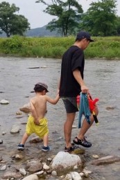 ■海も川も普段も使える水陸両用! クラシカルなヒザ上丈が特徴的なスイムショーツ。