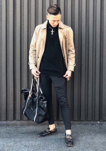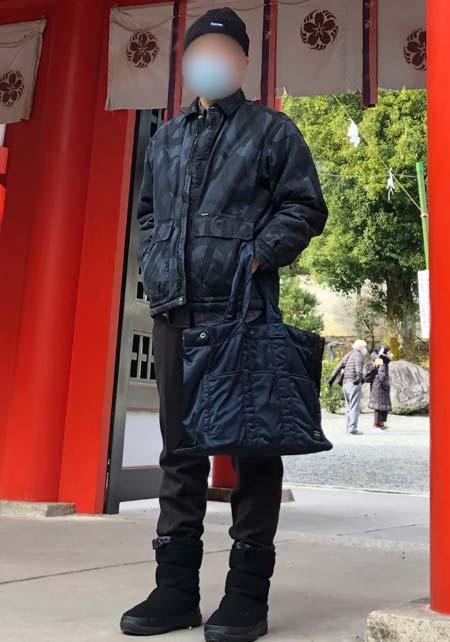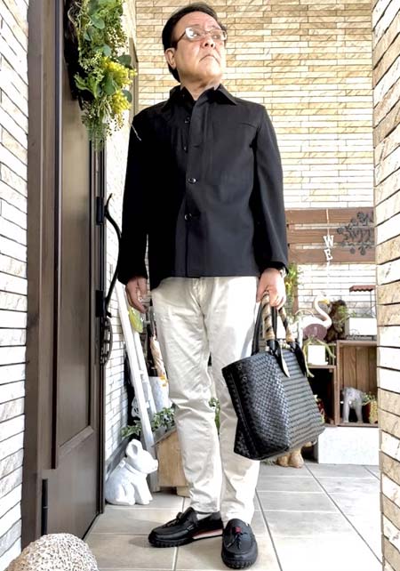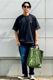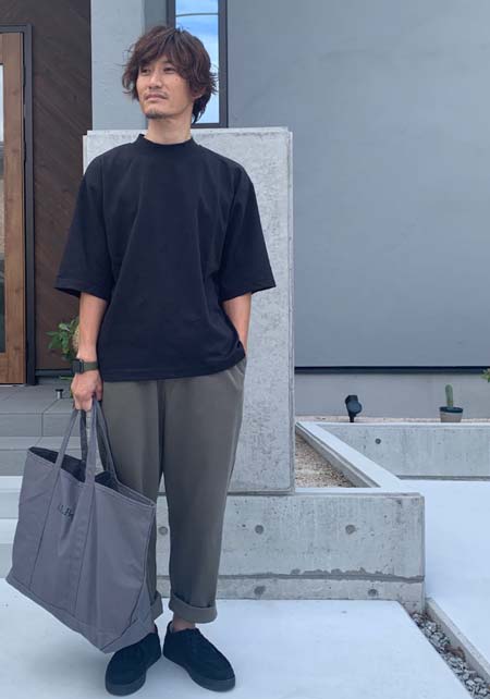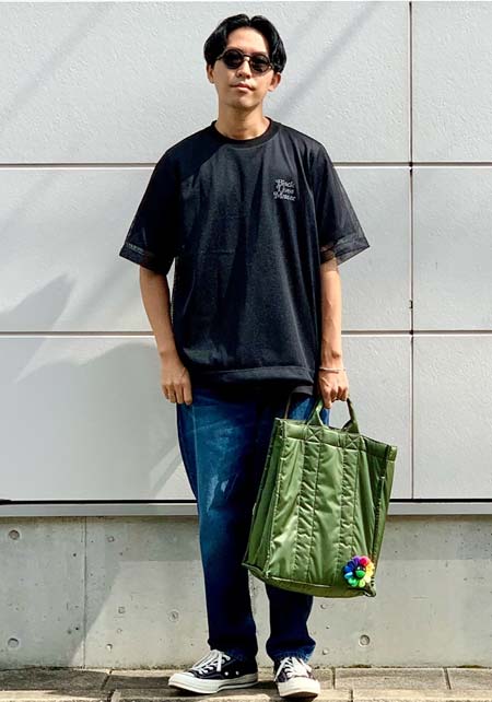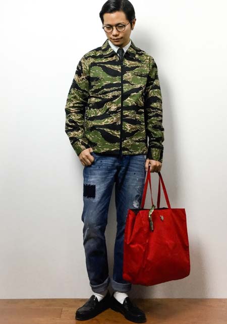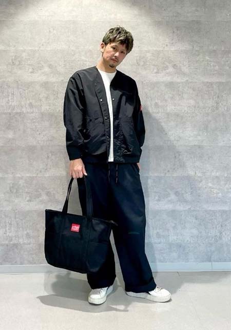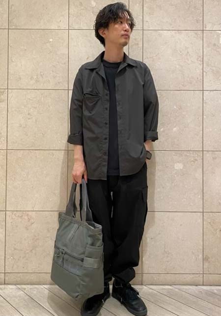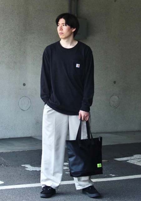 カッコいいオールブラックと、ちょい無骨なカモフラ柄のシンプルトート。