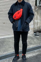 ザ・ノースフェイスのウエストバッグ×おしゃれな着こなし