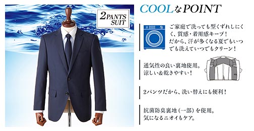 2パンツで18,800円~という「リーズナブルな価格が魅力」の洗えるスーツ。