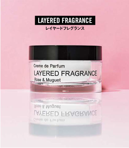 清潔で優しいミュゲと可憐なローズがエレガントな印象を演出。肌に塗るタイプで香りの持続性が高い。
