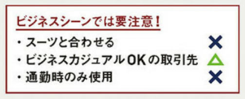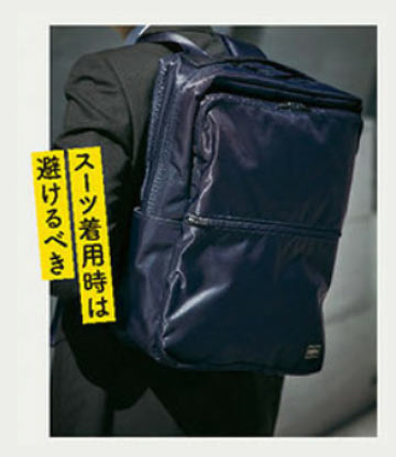 型崩れの原因になるほか、背中の蒸れも気になるので、スーツスタイルの時には使用を避けたい