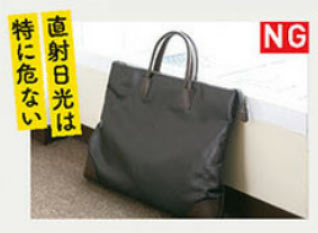 置き方には特に決まりはない一方、置き場所には注意が必要です。風通しがよく、直射日光が当たらない場所を選びます。特に革製品は湿気を嫌うので、注意しましょう。また、直射日光が当たると変色や変質の原因ともなります。