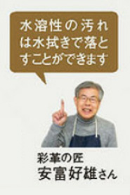 中にジュースなどをこぼした場合は、残っている汁気を取ってから、水拭きして落とします。