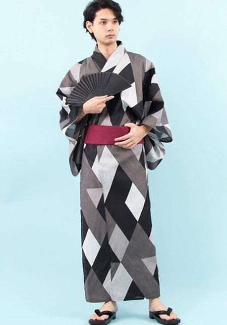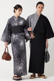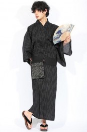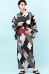 落ち着いた黒格子と白帯とのモノトーンが冴える浴衣2点セット。大人モダンなデザインなことから20代・30代男性を中心に人気。
