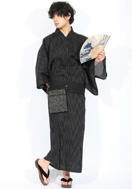 涼しげな着心地の「しじら織り」を施した浴衣セット。帯・下駄・扇子・巾着の全てはブラックで統一されており、スタイリッシュでカッコいい浴衣コーデが即叶います。