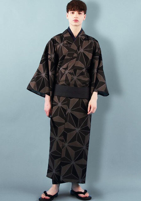 こちらはとライバルを肩と後ろ裾部分に配した浴衣。男らしさを上げるカッコいい柄と、染めによる渋い色合いが絶妙!